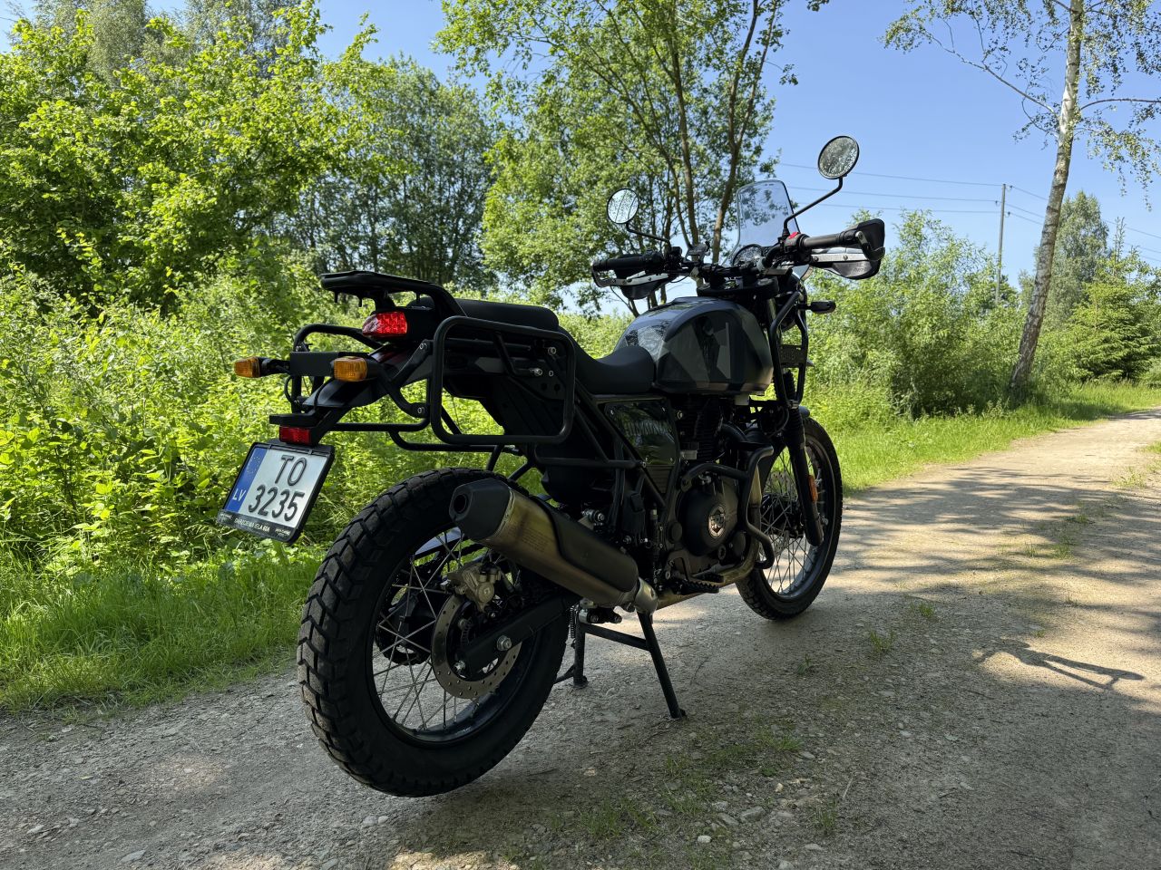 Labdien! Motociklu iegādājos jaunu. Saudzīgi un akurāti iebraukts. Nav mocīts un spīdzināts. Apkopes veiktas dīlera centrā. Papildaprīkojumā iegādātas dzinēja aizsargdugas, roku sargi, somu stiprinājuma rāmji un atbalsta kājiņa stabilākai motocikla novietošanai mīkstākā augsnē.